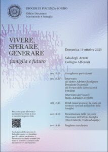 Domenica 19 ottobre presso la sala degli Arazzi del Collegio Alberoni a partire dalle ore 16 l’ufficio diocesano del matrimonio e della famiglia propone un pomeriggio di riflessione e presentazione delle proposte diocesane per il prossimo anno pastorale